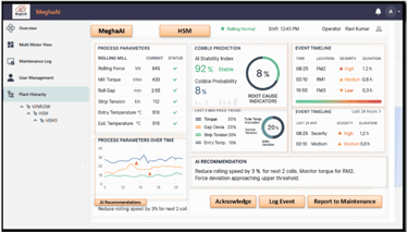 Introducing the AI-Based Cobble Prediction System — a cutting-edge Megha AI solution designed to revolutionize operational reliability in steel rolling mills. Cobble events, sudden disruptions in the rolling process, can lead to costly downtime, equipment damage, and production delays. Our intelligent system empowers plant operators with real-time insights and proactive recommendations to stay ahead of risk.